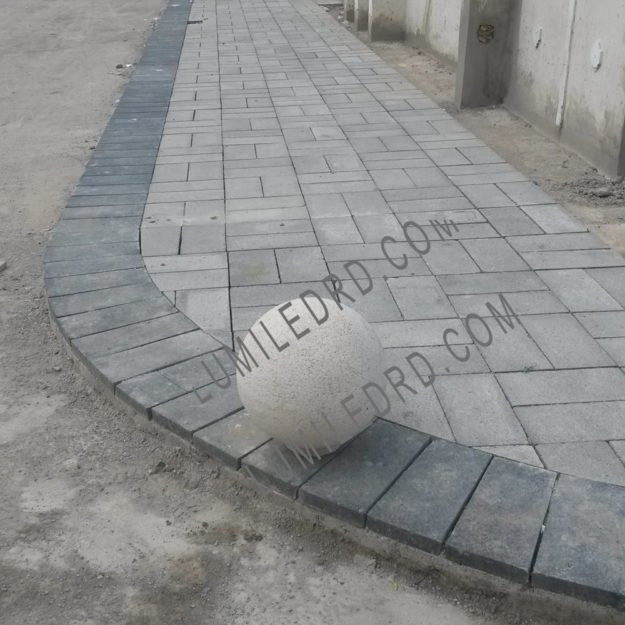 Bolardo de hormigón arquitectónico de forma esférica, con base empotrable, textura lisa o decapada. Tono estándar: Blanco, Beige ó Gris granítico.